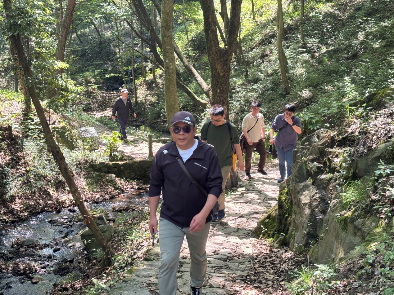 拍完集體照后,大家步行至“龍鷲登山步道”入口,上午9:15正式開(kāi)始徒步、爬山。