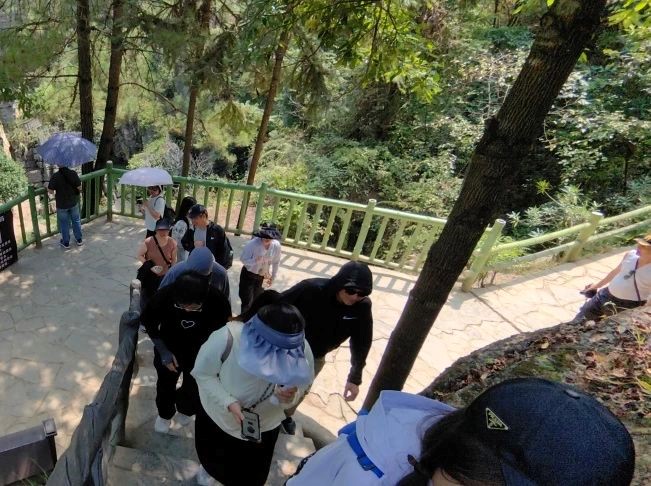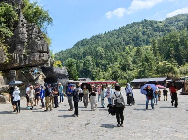 之后去往云龍河地縫景區,感受地縫中的懸崖絕壁,河流急湍、懸瀑飛濺。其中的云龍河地縫、云龍河絕壁、云龍河懸瀑及跌水,引人贊嘆。更有水流侵蝕作用后,構成的天然集水蝕峽谷、溶巖洞穴、絕壁峰叢、天坑地縫、瀑布跌水為一體的水文地質(zhì)大觀(guān)。