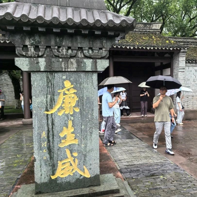 帶著(zhù)從真理園汲取的精神養分,黨員同志們繼續冒雨前行,抵達以清廉文化著(zhù)稱(chēng)的清風(fēng)園。雨水洗塵,更映襯清廉本色。大家沿著(zhù)精心設計的廉政教育路線(xiàn),認真參觀(guān)了古代清官廉吏事跡展區、廉政文化主題展陳等。一幅幅承載歷史記憶的畫(huà)卷、一件件寓意深刻的實(shí)物、一個(gè)個(gè)感人至深的廉潔故事,生動(dòng)詮釋了“公生明,廉生威”的深刻內涵。特別是那些觸目驚心的貪腐案例警示墻,更是發(fā)人深省,為全體黨員敲響了廉潔自律的長(cháng)鳴警鐘。大家深刻感受到,清廉不僅是中華民族的傳統美德,更是共產(chǎn)黨人必須堅守的政治本色和生命線(xiàn)。通過(guò)沉浸式學(xué)習,黨員們對加強黨性修養、嚴守紀律規矩有了更深切的體會(huì )。